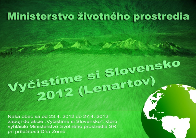 Dňa 20. apríla 2012 sme v rámci DŇA ZEME zbierali odpadky v okolí školy a v našej obci. Zapojili sme sa do celoslovenskej akcie "Vyčistime si Slovensko". Čistenia sa zúčastnilo 214 žiakov a 25 učiteľov. Spolu naplnili 108 vriec odpadu. Najviac vriec odpadu za triedy mali:4.A, 5.A a 6.C.